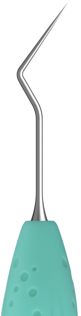 - Części robocze sondy mają różne długości (13,5 i 14 mm) i są wygięte pod różnymi kątami (100° i 145°), co ułatwia manewrowanie narzędziem.