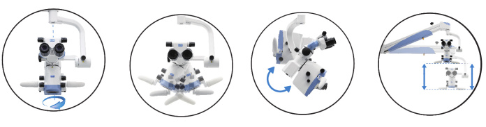 • ergonomiczne rękojeści pozwalające na łatwą manipulację głowicy mikroskopu,